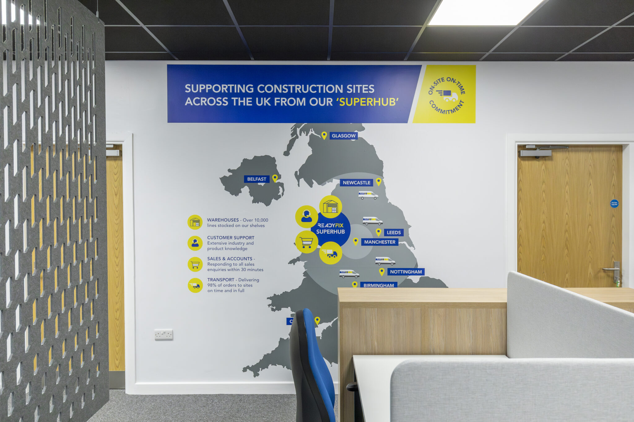 Your workplace reflects your brand and values. Incorporating visual elements such as brand messaging, past achievements, or motivational graphics helps create a sense of purpose and pride. These touches can inspire employees, reinforce company culture, and leave a lasting impression on visitors.